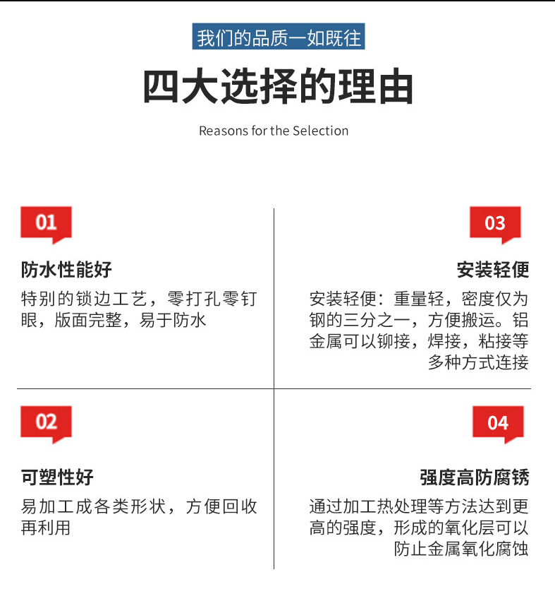 铝镁锰板屋面瓦,优质防水新材料,让建筑品质更出色铝镁锰板屋面瓦是一种新型的建筑材料,与传统的混凝土瓦相比,具有更高的使用寿命和更好的防水性能。本文将从材料特性、应用范围和施工技术三个方面来介绍镁锰板屋面瓦。 首先,铝镁锰板屋面瓦采用优质铝镁锰合金为原材料,通过机器加工成型而成。该材料具有密度小、硬度高重量轻、强度大等特点,非常适合应用于屋面瓦生产制造。此外,铝镁锰板具有较好的耐腐蚀性能,能够长时间抵御雨水、日晒以及酸碱等自然环境的侵蚀。同时,在应用过程中,铝镁锰板屋面瓦还可以起到隔音降噪、抗风压等重作用,具有非常广泛的应用前景。 其次,铝镁锰板屋面瓦的使用范围十分广泛。它不仅适用于住宅、别墅等民用建筑,还可以用于商业建筑、工业厂房、市政工程以及大型活场馆等各种建筑类型。 在应用方面,铝镁锰板屋面瓦又因其美观、耐久,而受到了越来越多的建筑师和设计师的青睐。相较于普通混凝土瓦,铝镁锰板成品的表面光洁平整,具更好美观性和装饰效果,可大大提升建筑物的整体形象。 最后,施工技术也是铝镁锰板屋面瓦能否发挥出应有优势的重要方面。在施工过程中,需要注意一系列细节问题,如墙处理、排水斜度、瓦之间的搭接和固定方式等,以确保屋面的密封性和防水性。其次,在选择施工队伍时,也要注意施工人员的经验和技能是否达标,从而避免施工质量的差异化问题。 综所述,铝镁锰板屋面瓦是一种材质新颖、性能优越、应用范围广泛的建筑材料。随着人们对建筑品质要求的不断提高,铝镁锰板屋面瓦的应用前景将逐步壮大。我们相信,在不的将来,铝镁锰板屋面瓦必将成为建筑行业中不可或缺的重要材料一。 |
